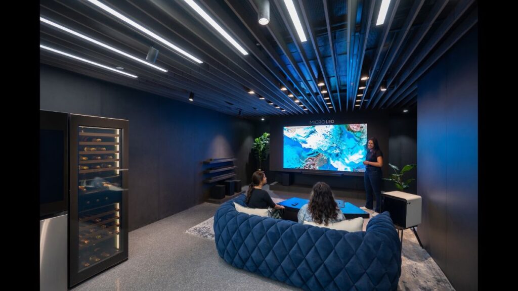 Private Cinema – This is another demonstration of the connected device experience that Samsung offers. Here, customers experience the amazing 110-inch MicroLED TV while the SmartThings app connects via a smartphone to control everything from the curtains, lights, sound bar to even the air conditioner to transform the room into a movie theatre.