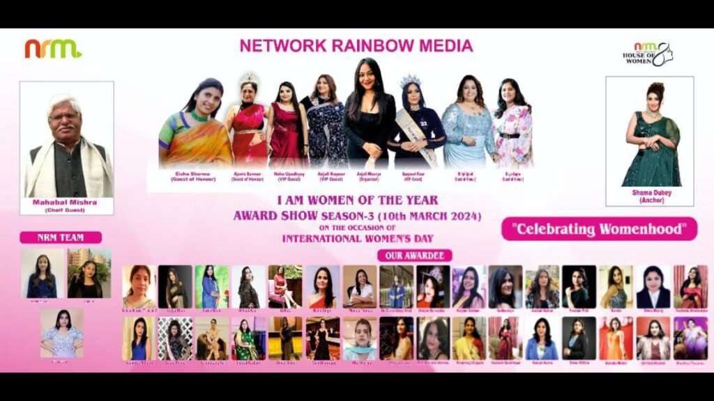 New Delhi (India) March 16: On the occasion of International Women’s Day, the I Am Woman of the Year Award Show Season 3, 2024, was organized at the Constitution Club of India in Delhi by Network Rainbow Media, attended by more than 50 women from across the country and abroad. The event was organized by Anjali Maurya, whose sole purpose has always been to honor women and appreciate their contributions to society. Women from various fields were honored with awards at the show.