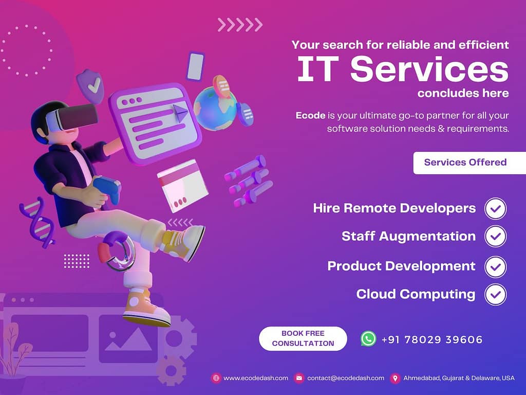 Ecode’s proven track record of delivering cutting-edge IT solutions, combined with their unwavering commitment to customer satisfaction positions them as the ideal partner for businesses seeking effective software development services. Professional support with technical accomplishment, that’s how they approach with their evergreen full-stack development. Whether it’s reliable Web and Mobile app development, Hiring remote developers, Staff augmentation, Product development, Cloud computing, Custom software solutions, or any other IT service, their adept team is oriented to provide tailored and proficient services to meet every client’s unique needs and specifications.