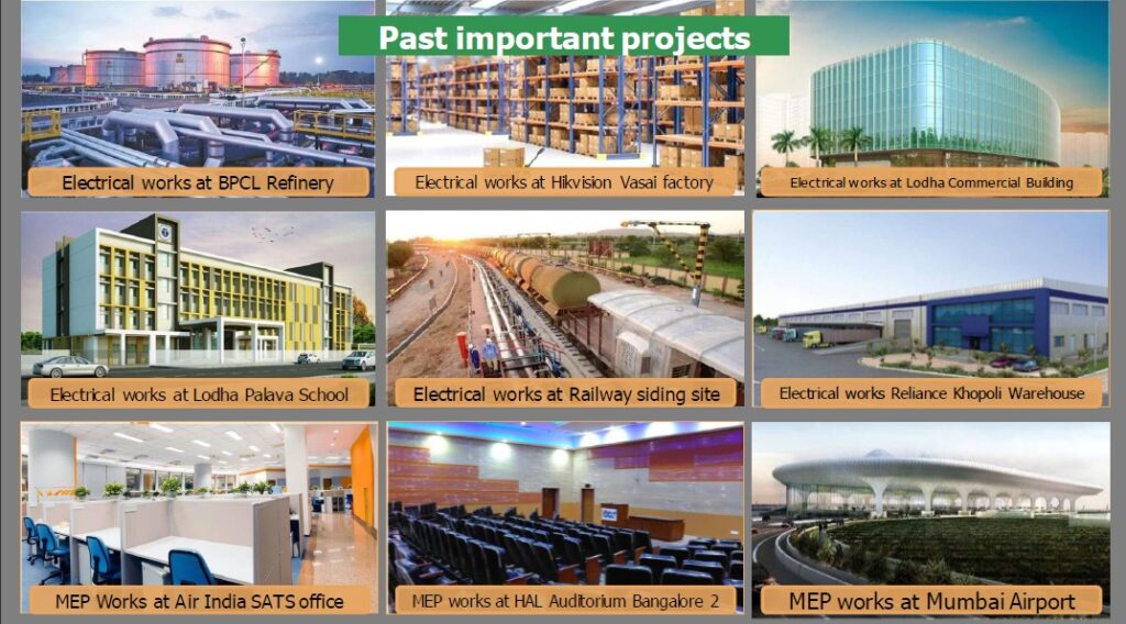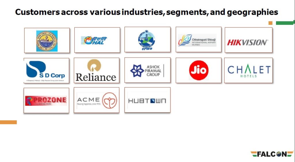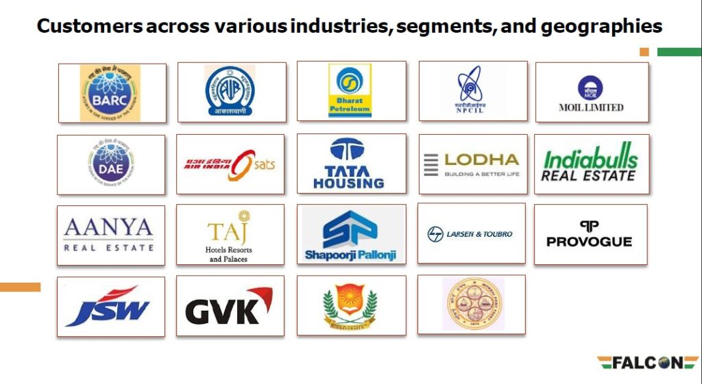 Established in 2014, Falcon Technoprojects India Limited provides mechanical, electrical and plumbing services to its clients across India and operates in various sectors such as petroleum refineries, housing estates, nuclear power, construction, etc. The company offers mechanical, electrical and plumbing (MEP) services. These services include the design, selection and installation of integrated mechanical, electrical and plumbing systems. This includes the installation of air conditioning, power and lighting systems, water supply and drainage, fire protection and fire extinguishing systems and telephones. Company’s client list includes – BARC, BPCL, Akashvani, NPCIl, MOIL, Air India, Tata Housing, Lodha, L&T, JSW, GVK, Shapoorji Pallonji, Reliance, HAL, Jio, Hubtown among others.