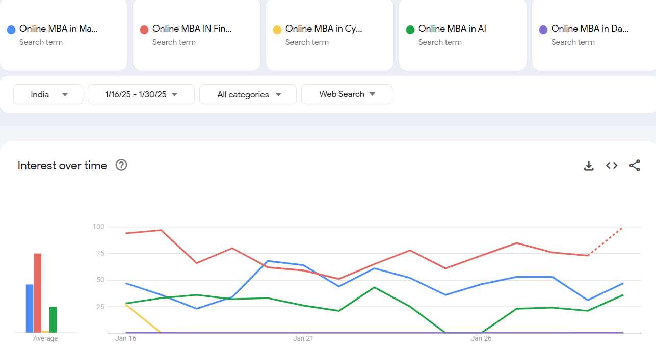 It’s not just our perspective—Google Trends data supports this growing interest. Google Trends is a powerful tool for analyzing search patterns, clearly highlighting what people value. We have seen a 42% increase in Online MBA searches in just the last 30 days.