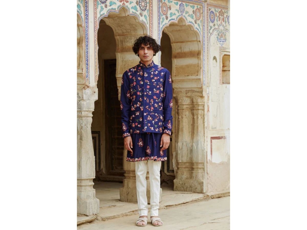 From resplendent kurtas to finely structured Nehru jackets, from experimental yet riveting sherwanis to enchanting jodhpuris, Kalpraag offers a meticulously curated wardrobe for the modern Indian man. Each garment exudes a quiet opulence – rich in detail, yet never ostentatious. The craftsmanship is uncompromising, with precision cuts, graceful drapes and fabric choices that feel indulgent on the skin. In an industry often saturated with excess, Kalpraag offers eccentric elegance.